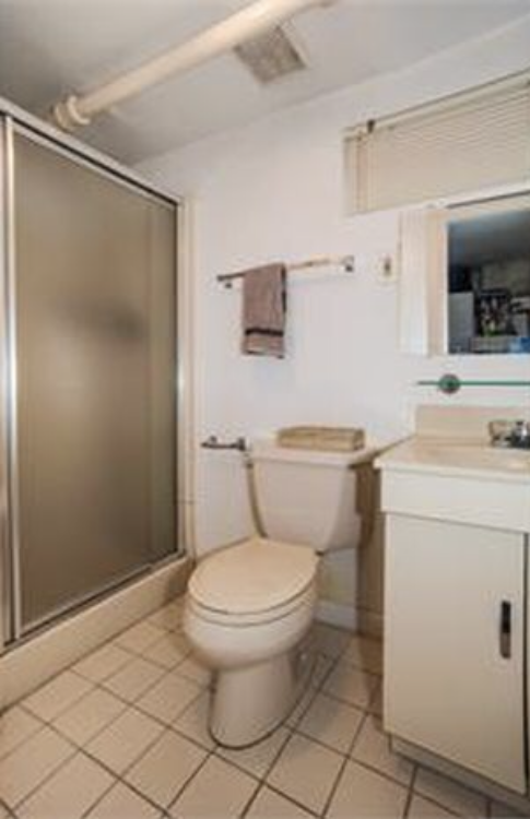 This basement bathroom was nothing to write home about…nothing! We used it for maybe the first year of living here while we renovated our main bathroom. This small space, with an even tighter shower stall, definitely felt like a basement bathroom!